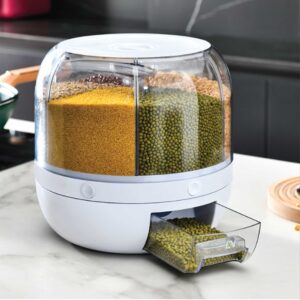 6 Grid Rotating Food Grain Dispenser 3.6L – Compartment Storage Container