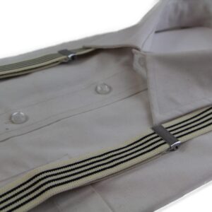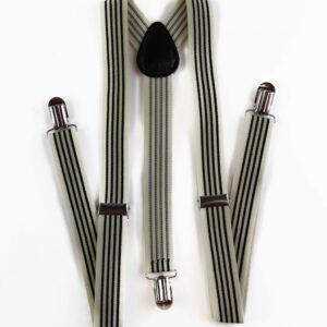 Mens Adjustable Cream & Black Striped Patterned Suspenders