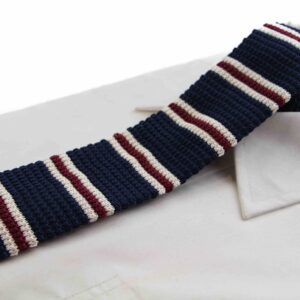 Knitted Navy, Latte & Maroon Striped Patterned Neck Tie