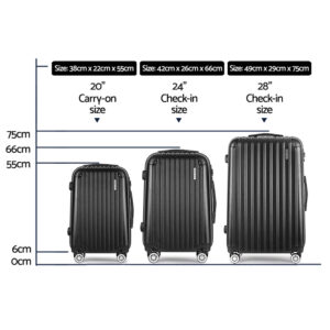 Wanderlite 3 Set Luggage 20-24-28 Inch with Zipper Lock Carry On Hard Shell Travel Suitcase Luggage Case Black
