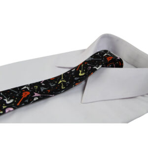 Mens Black With Coloured Guitars 5cm Skinny Neck Tie