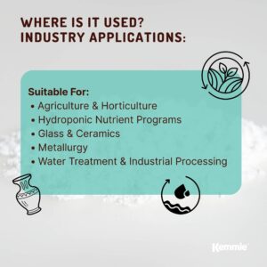 Boric Acid (H3BO3) is a high-purity white crystalline solid used in agricultural, hydroponic, technical and industrial applications. With over 99.9 percent purity, it dissolves cleanly in water and is suitable where a reliable boron source or technical-grade orthoboric acid is required. Fully soluble and odourless, this material supports boron nutrient correction in soils and hydroponic programs and is also used in glass, ceramics, metallurgy and water treatment processes.