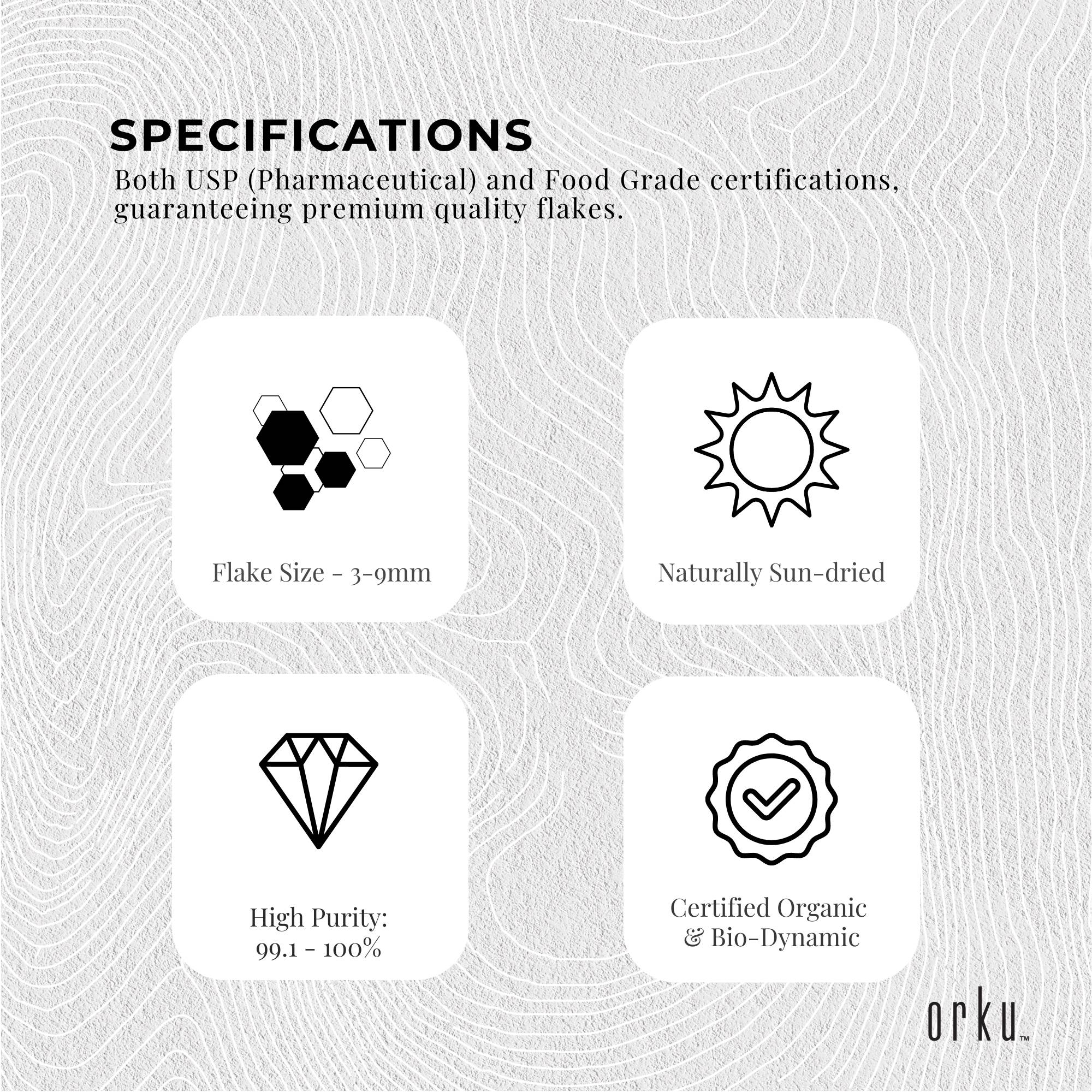 - Quality Assured: Both USP (Pharmaceutical) and Food Grade certifications, guaranteeing premium quality flakes.