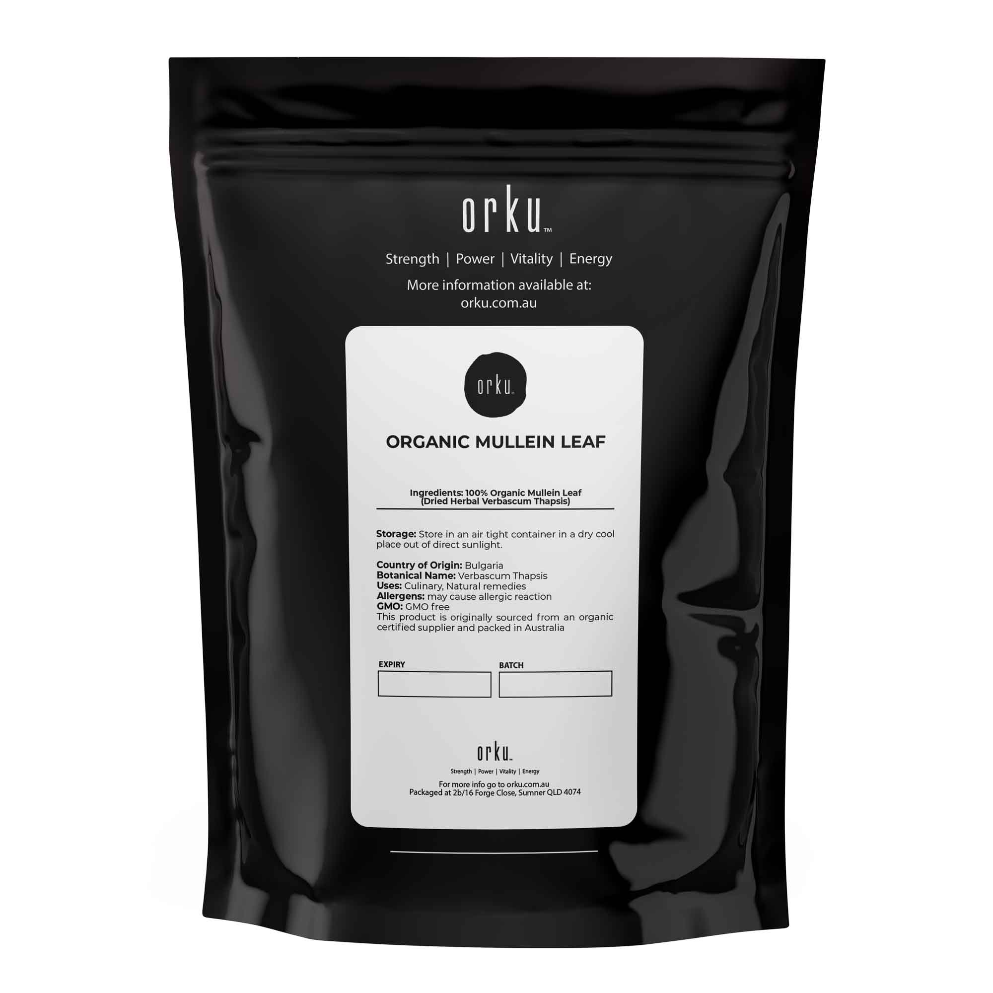 Orku Organic Dried Mullein Leaf is GMO free and has been derived from the dried leaves of the mullein plant.