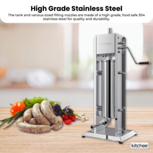 This sturdy 7L Manual Vertical Sausage Stuffer Machine is designed to be mounted securely onto any surface. The tank and various sized filling nozzles are made of a high grade, food safe 304 stainless steel for quality and durability.