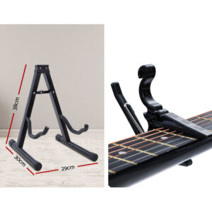 Package Content(1) Acoustic Guitar x1(2) Shoulder Strap x1(3) Pick x2(4) Carry Bag x1(5) Guitar Stand x1(6) Extra Steel Strings x6(7) Capo x1