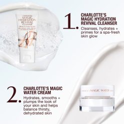 Charlotte’s Magic Skin Icons Work in Glowing Harmony to Cleanse. Hydrate + Revive the Look of Your Skin for The Best. Dewy. Glass-Like. Fresh Water Glow of Your Life! Instantly Primes Your Skin to Create the Perfect Glowing Canvas for Mesmerising Mother’s Day Makeup Magic! It’s Immediate Skin Revival with Clinically Proven Results! Easy-To-Choose. Easy-To-Use. Easy-To-Gift! This set includes: Charlotte’s Magic Hydration Revival Cleanser 30ml. Charlotte’s Magic Water Cream 50ml