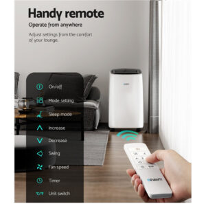 Hot days are not too far away. So why not pick up our Devanti Portable Air Conditioner to help you stay cool comfortably and economically throughout the season. The air conditioner is three appliances rolled into one: an air conditioner, a 2-speed fan and a dehumidifier. The portable air conditioner uses MIST Evaporative Technology so that you rarely need to empty the water tank � simply set and forget. The air conditioner rapidly delivers super-cool breezes throughout rooms sized 20m� to 30m� and operates quietly and efficiently. The LCD display allows for a clear glance of all your settings and a handy remote control lets you operate it from anywhere in the room. The air conditioner can also be set to work for a pre-set number of hours with its 24-hour timer. Four castor wheels and built-in handles make the air conditioner very portable so that you can keep cool wherever you are. An included adjustable window exhaust kit enables easy installation of the exhaust hose for hot air to be extracted easily. And when it comes to cleaning, the removable mesh filter allows for hassle-free maintenance. Do not let the heat get you down this summer. Live in a cool and refreshing ambience with a Devanti Portable Air Conditioner.