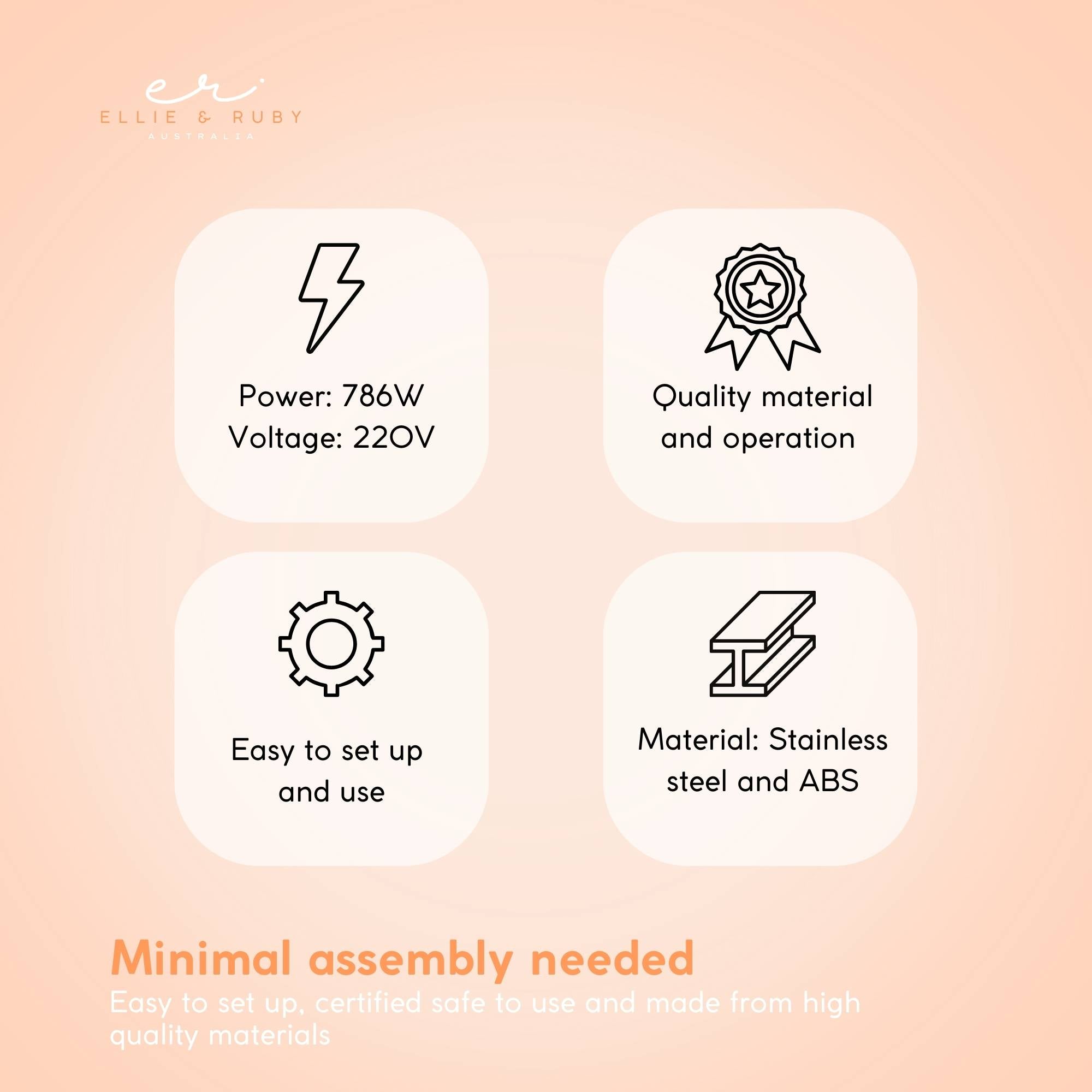 The Ellie and Ruby Facial Steamer is a professional-style unit suitable for home and salon environments. Lightweight yet durable, it is designed for routine cosmetic and skincare preparation using fine steam, with an optional ozone steam mode.