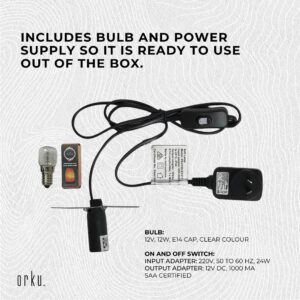 - Bulb: 12V, 12W, E14 cap, clear colour