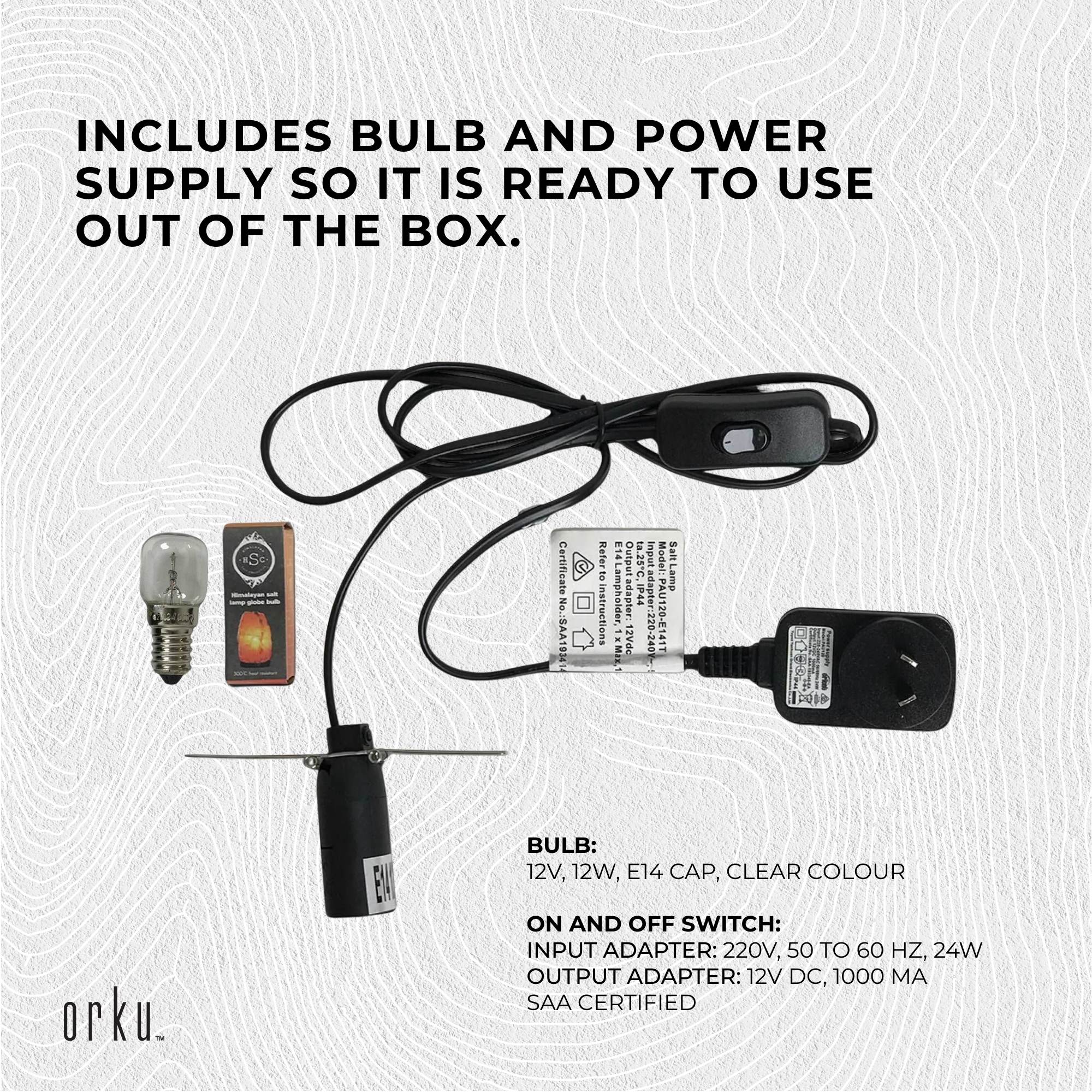 - Each lamp is unique in colour and shape because it is cut from natural rock salt.