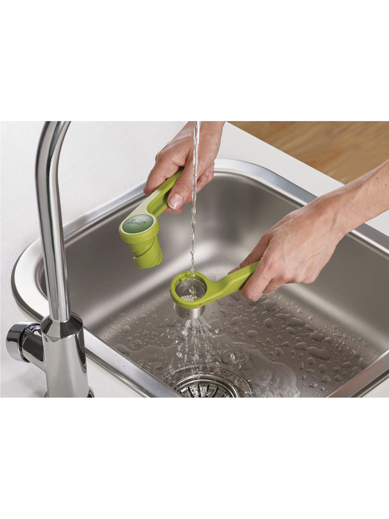 Most garlic presses require strong hands to operate and their vertical squeezing action can often be awkward to use. With the Helix garlic press. however. the squeezing force is applied horizontally. which is much more comfortable and utilises the power of the shoulders as well. In addition. its unique. twisting mechanism multiplies the force used. which means you get more squeezing power from less effort.
