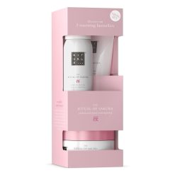 The Ritual of Sakura set is the perfect introduction to Rituals and makes an ideal gift for your loved ones or yourself. combining three of the collection’s bestsellers: a shower foam. 92% natural-origin body cream and a 91% natural-origin sugar polish scrub. All enriched with the renewing scent of cherry blossom and nourishing rice milk extract.