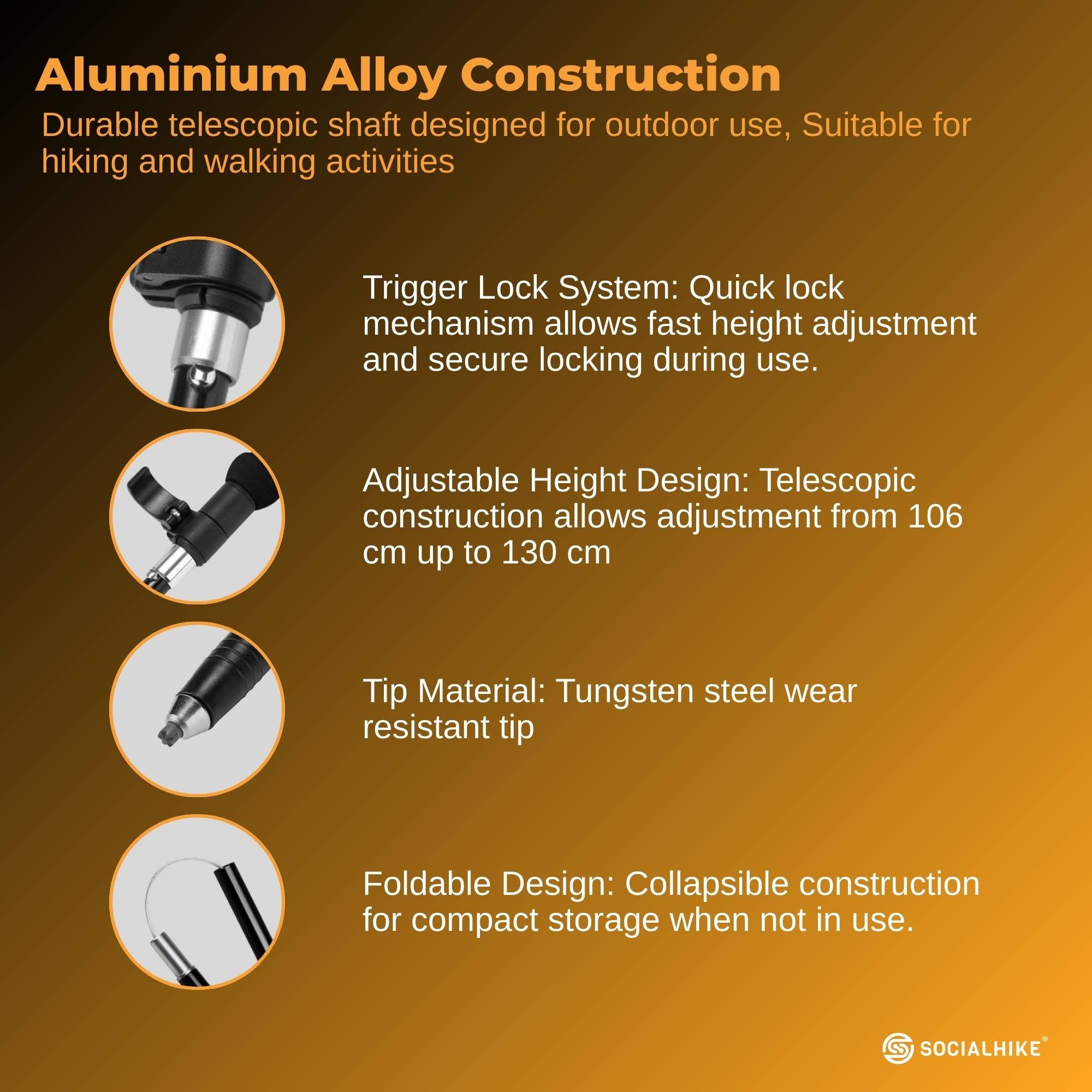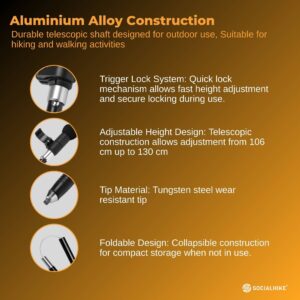 • Adjustable Height Design: Telescopic construction allows adjustment from 106 cm up to 130 cm to suit different users and terrain.