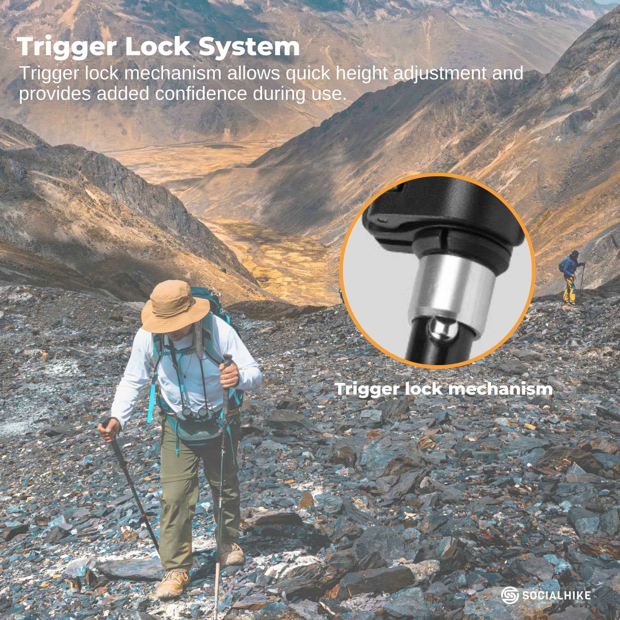 • Trigger Lock System: Quick lock mechanism allows fast height adjustment and secure locking during use.
