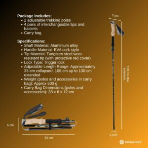 Social Hike Trekking Poles Set of 2 Adjustable Lightweight Hiking Walking Sticks