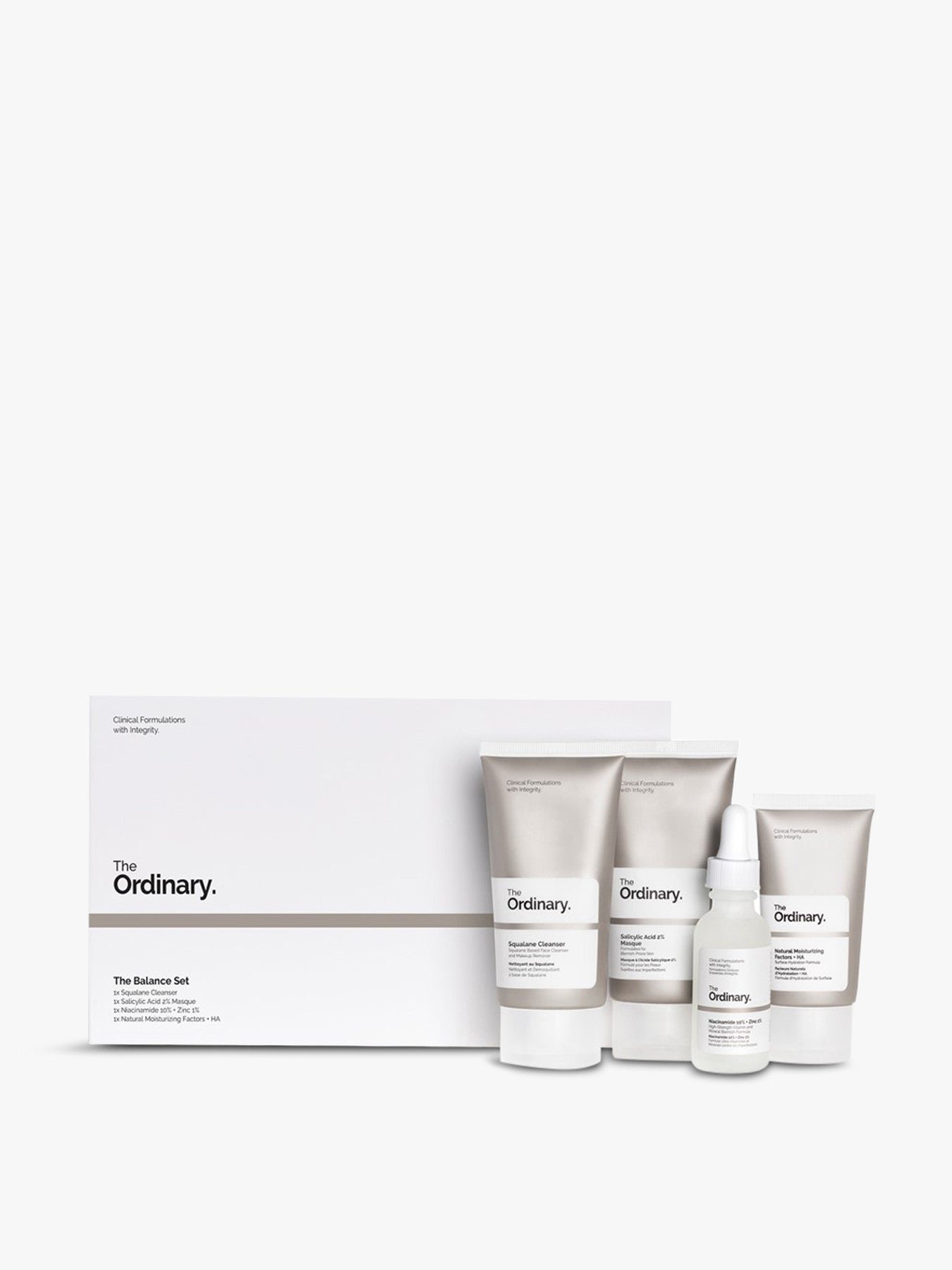 This skincare regimen gently cleanses the skin. targets lackluster tone and textural irregularities. balances visible aspects of sebum activity. and provides immediate hydration.
