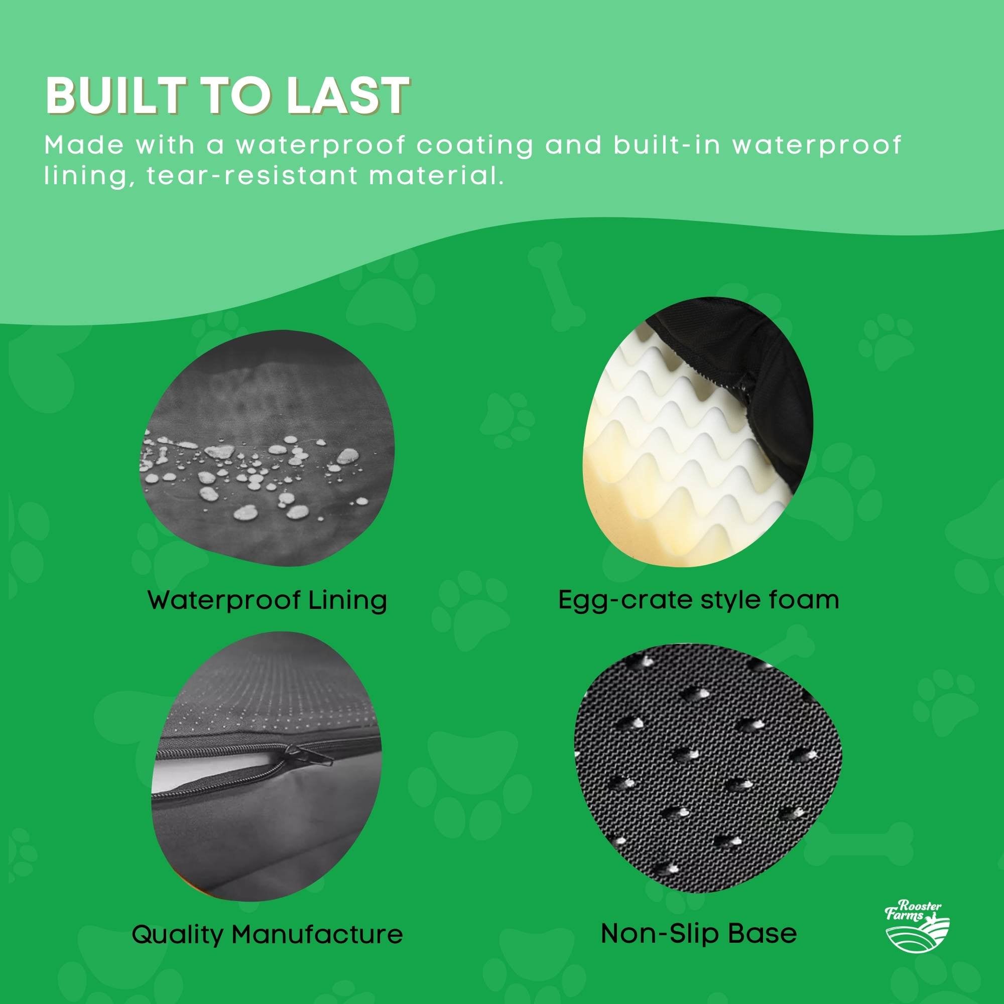 - Durable waterproof design with Oxford cloth exterior and waterproof lining to help resist spills and mess and the non-slip base helps keep the bed stable on tile and floorboards.